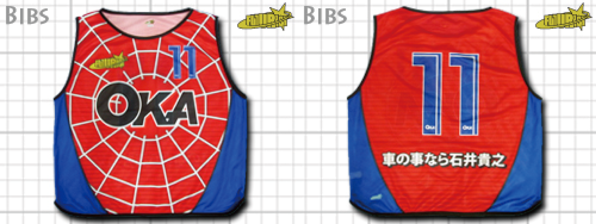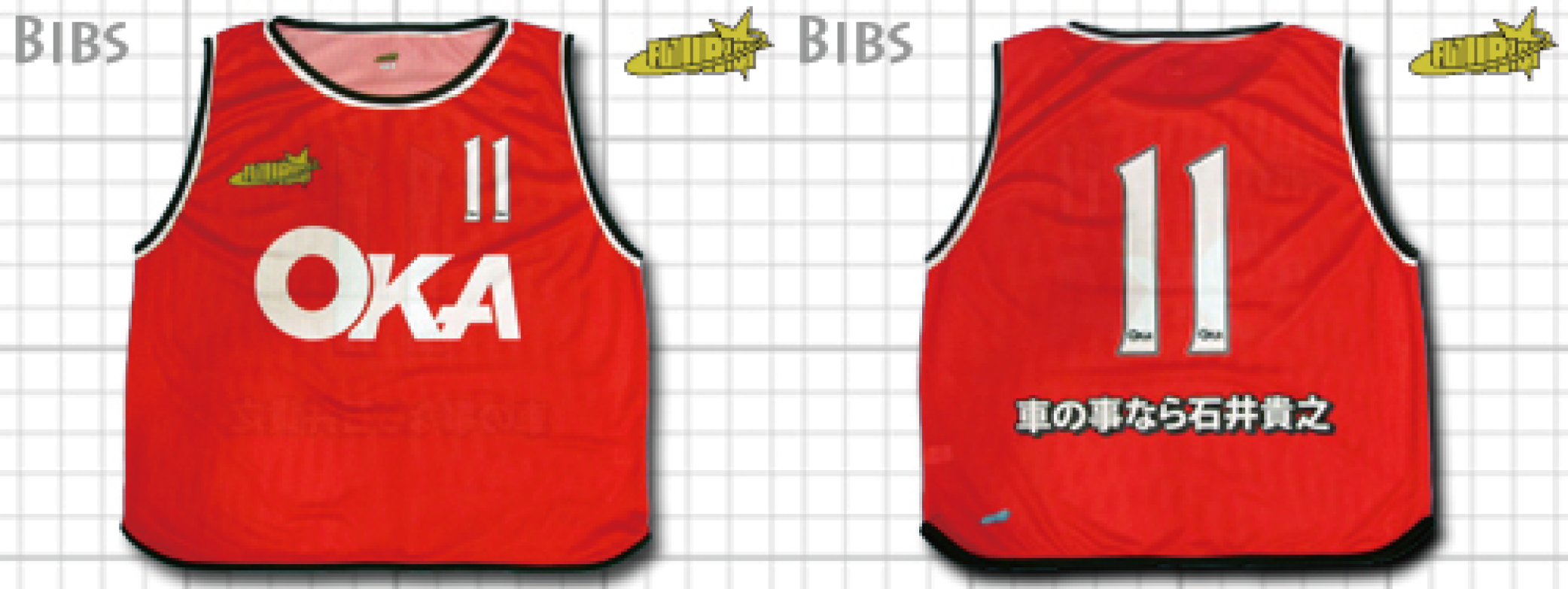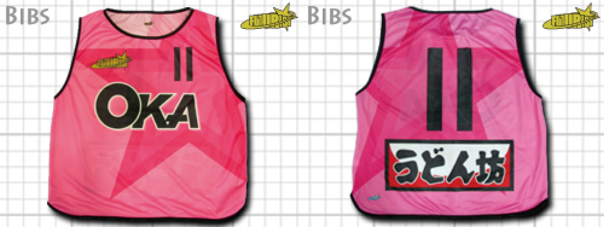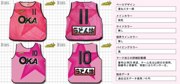 今まで製作させていただいたビブスの一部を紹介しています。下記タブより製品を選択して、製作事例をご覧ください。