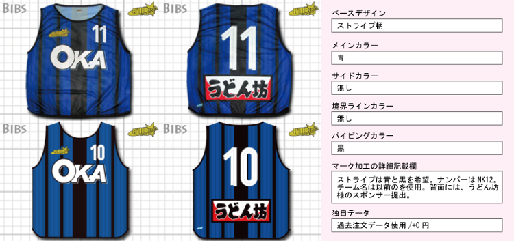 AKOフットサルチーム様のビブス。イタリア・セリエAのインテル風な配色は、ビブスの割り当ての関係で。